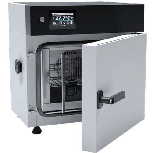 An incubator with forced air is a device used to maintain a controlled environment (temperature, humidity, and air circulation) for incubating eggs, cultures, or biological samples. It uses a fan to circulate air evenly throughout the chamber, ensuring uniform temperature distribution and promoting optimal conditions for hatching or growth.
